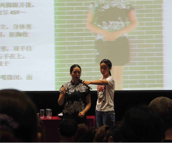 手脑并用,学员们现场演练基本服务姿态
